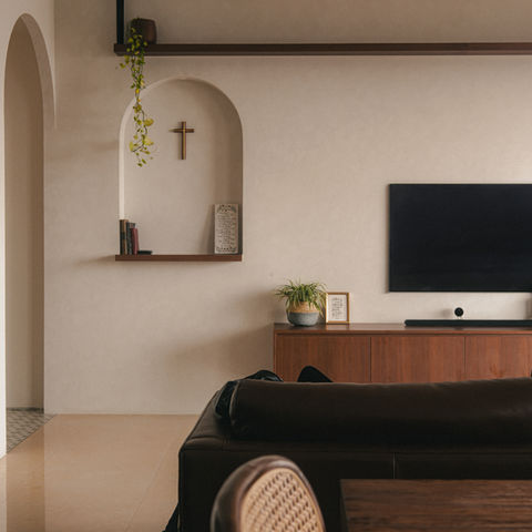 The soft arch, the warm wood accents ~